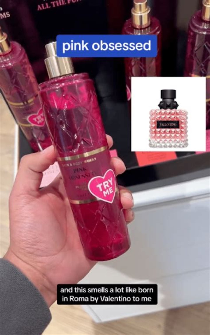 "It's got warm florals and vanilla," he says. Like the other Bath & Body Works sprays, Pink Obsessed is $18.95 a pop, while a 3.4-ounce bottle (100 milliliters) of Donna Born In Roma Eau de Parfum goes for $165.