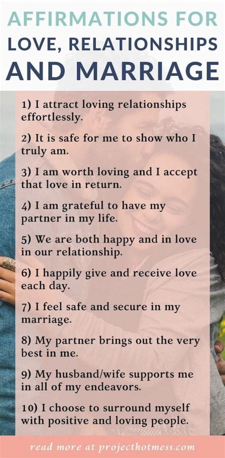 "This affirmation helps improve the marriage by reminding both partners of their mutual goals," she explains.