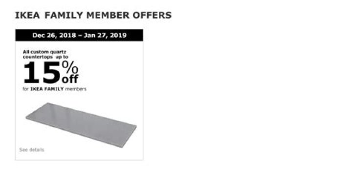 At the time of this writing, for instance, Ikea Family members can receive 15 percent off of any custom quartz countertop purchases, and up 10 percent off of certain snack and beverage buys. Not bad!