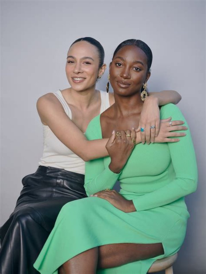Aurora Perrineau and Sam Strike on the couch together.