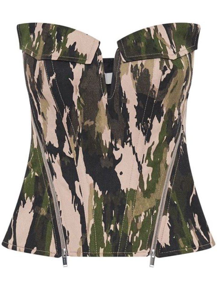 Dua Lipa looked sexier than ever when she rocked a strapless camouflage corset top with a gaping cutout on the chest in a sexy new selfie.