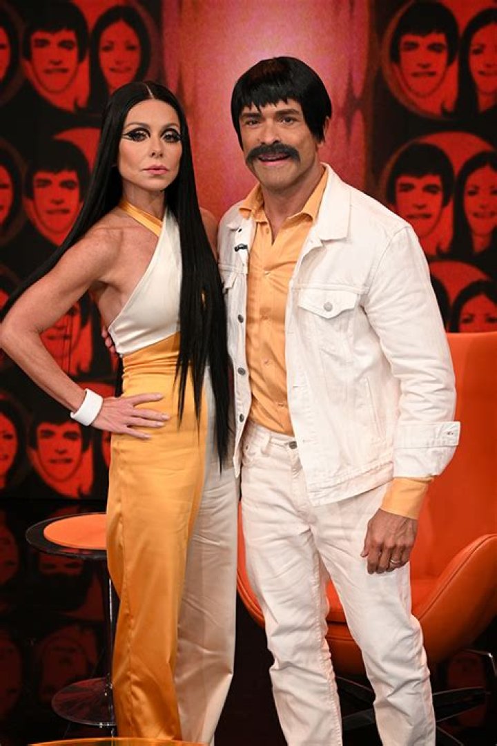 Kelly and Mark took a trip back into the past and dressed up as the iconic pair Sonny and Cher. Kelly sported a sleek black wig and dramatic eye makeup to play Cher, while Mark fully embraced the 1970s Sonny with a full mustache and white denim suit.