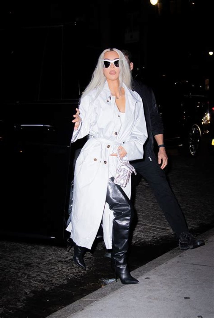 It’s quite a time to be Kim Kardashian, to say the least. After a terribly eventful long Halloween weekend, Kim Kardashian was spotted out on Nov 1 looking incredible stylish. She booked it from the Ritz Carlton Hotel join friend for dinner at Zero Bond in NYC. For her night out, she wore a white trench coat, paired with thigh-high, Balenciaga leather boots and sunglasses, to manage the flashing lights of the paparazzi.