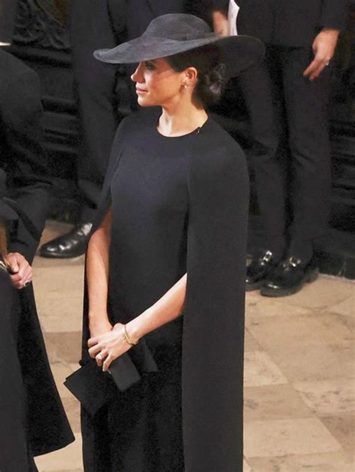 Meghan wore a black dress with a cape and a wide-brimmed black hat for the Queen’s state funeral service. The 41-year-old and Prince Harry arrived separately at the funeral. Prince Harry walked behind the Queen’s coffin during its procession from Westminster Hall to Westminster Abbey.