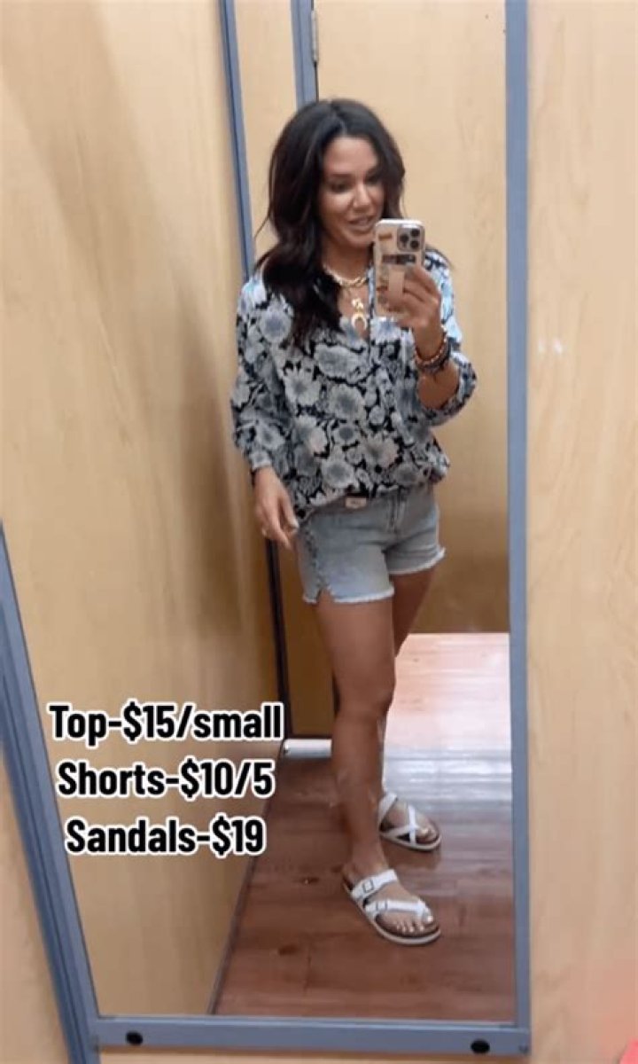 Nothing screams spring quite like a blouse with a floral print—and this one only costs $15. While Fernandez wore it with shorts, you could also pair it with white jeans on a cooler evening. And the sandals she's wearing appear to only be $7 now!