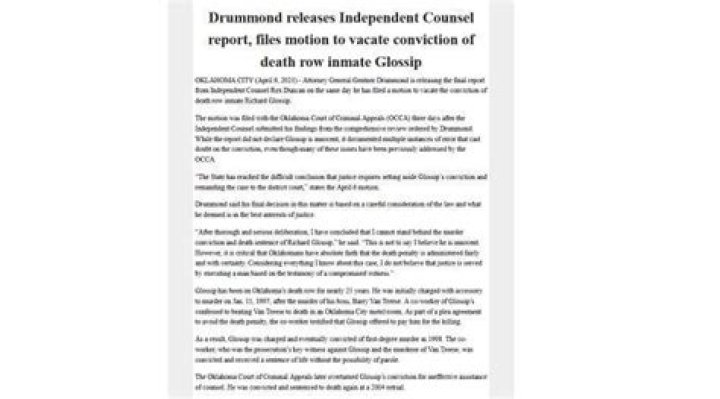 Who is Richard Glossip? Oklahoma AG files motion to vacate Death row inmate’s conviction