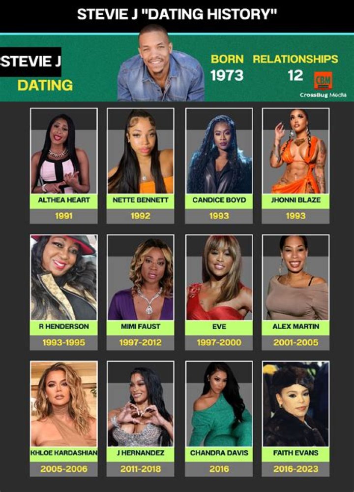 Online rumors of Stevie J.s’s dating past may vary. While it’s relatively simple to find out who’s dating Stevie J., it’s harder to keep track of all his flings, hookups and breakups. It’s even harder to keep every celebrity dating page and relationship timeline up to date. If you see any information about Stevie J. is dated, please let us know.